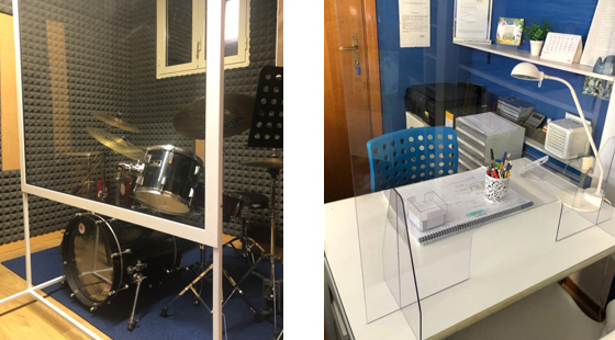 Abbiamo inoltre provveduto alla installazione di tutti i dispositivi di sicurezza previsti dal decreto, dall’utilizzo del termo-scanner per la misurazione della temperatura per tutti coloro che entreranno in Accademia o parteciperanno alle attività della stessa, all’istallazione di due colonnine dotate di dispenser con fotocellula per la distribuzione del disinfettante per l’igiene delle mani, all’uso delle mascherine, alla presenza di separatori trasparenti mobili in tutte le aule per garantire la distanza tra allievo e docente senza ledere alla qualità delle lezioni. Sarà possibile riattivare grazie all’utilizzo degli stessi separatori gran parte delle attività didattiche collettive garantendo il numero di presenze previsto dalla normativa sul distanziamento.